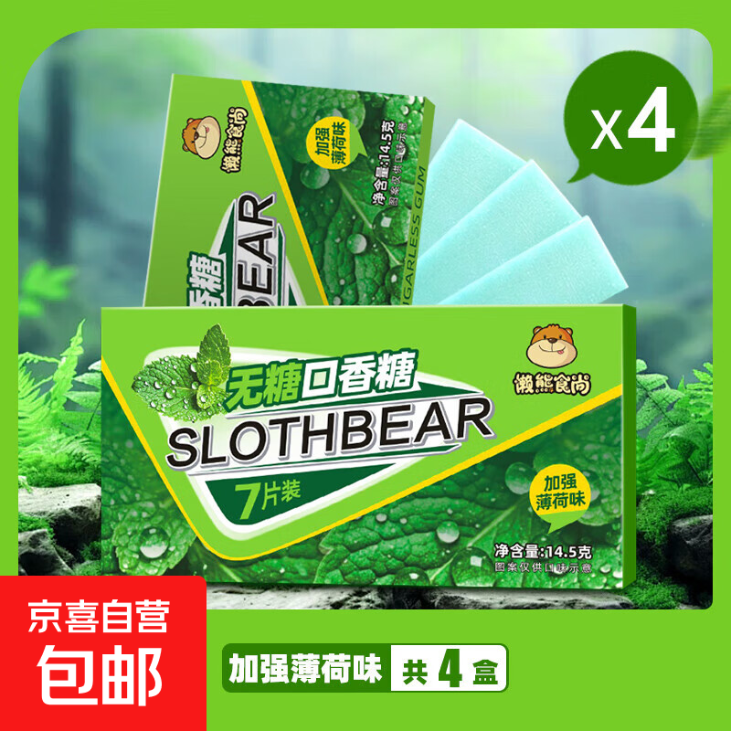 包邮 懒熊食尚无糖口香糖薄荷味清新口气办公室休闲糖果接吻糖便携润喉 加强薄荷味4盒
